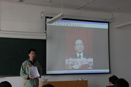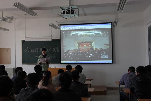 3月27日下午,Beat365中文官方网站学生第四党支部在临潼校区10-501教室,举行了学习国务院总理温家宝2012年政府工作报告的组织生活会,会议由党支部书记张立显主持。张立显首先向全体学生党员解读了国务院总理温家宝2012年政府工作报告全文,然后和学生党员们一起讨论了相关热点问题,强调了学习2012年政府工作报告的重要意义。整场组织生活会热情高涨,全体学生党员纷纷表示,在以后的工作中要勤奋工作,为社会主义建设贡献自己的力量。