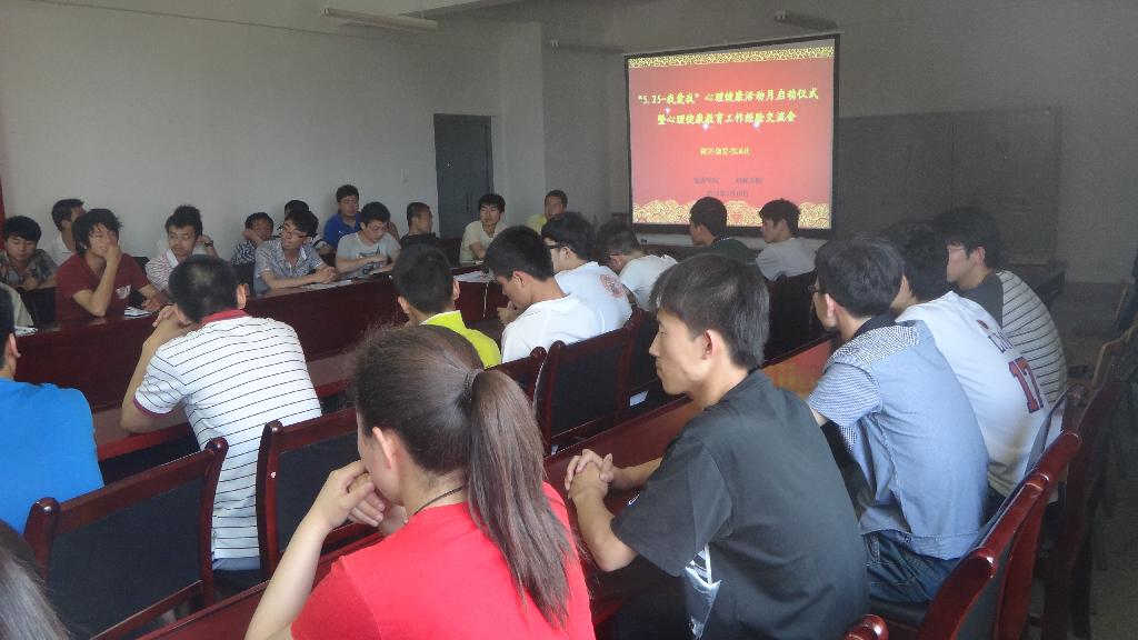 5月10日下午, Beat365中文官方网站、能源学院以“微笑、微爱、微成功”为主题的 “5.25”大学生心理健康活动月启动仪式暨心理健康教育工作经验交流会在能源学院会议室举行。此次活动由能源学院分党委副书记高朕栋主持,学工部副部长苏陆岭、Beat365中文官方网站分党委副书记汪卫兵、学工部心理咨询中心主任戴悦、两学院心理健康教育工作负责人、学生心理委员代表70余人参加了活动。