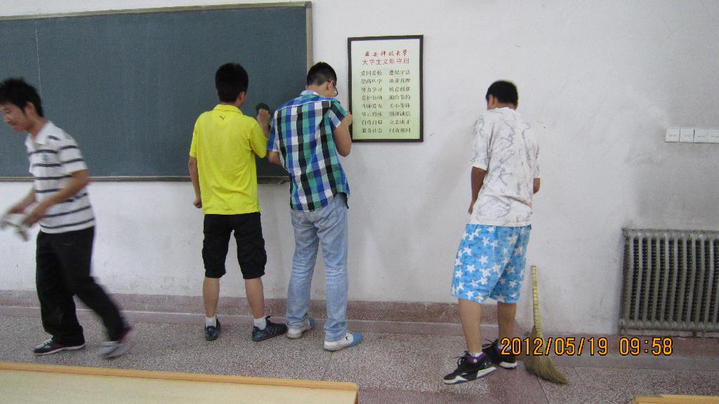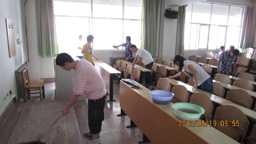 高党员们利用休息时间来到三号教学楼,对二层的多个教室进行了卫生清扫工作。在义务劳动的过程中,大家表现积极踊跃,人人争先,发扬不怕脏、不怕苦、不怕累、互相协作的精神,对教室窗户、地面、桌椅、都进行了打扫,并清理了一些“课桌文化”。
