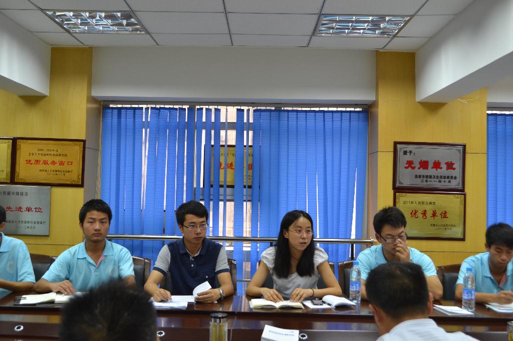 首先,中心的领导及工作人员向同学们介绍了市人力资源市场主要的公共服务内容,并将每个服务窗口开展的业务进行了详细的介绍。