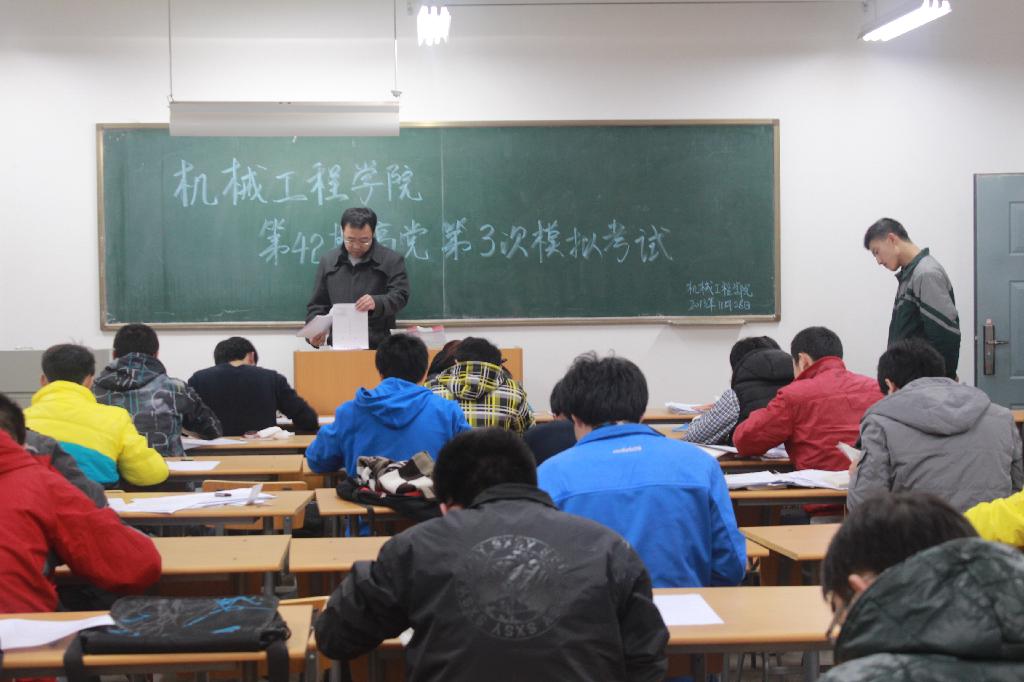 2013年11月28日,第四十二届第三次高党模拟考试在10教501、502举行,张耿老师亲自为高党学员监考。在历时一小时的模拟考试结束后,学员们又进行了自学讨论和义务扫除活动,晚九点半左右本次考试以及有关活动圆满结束。