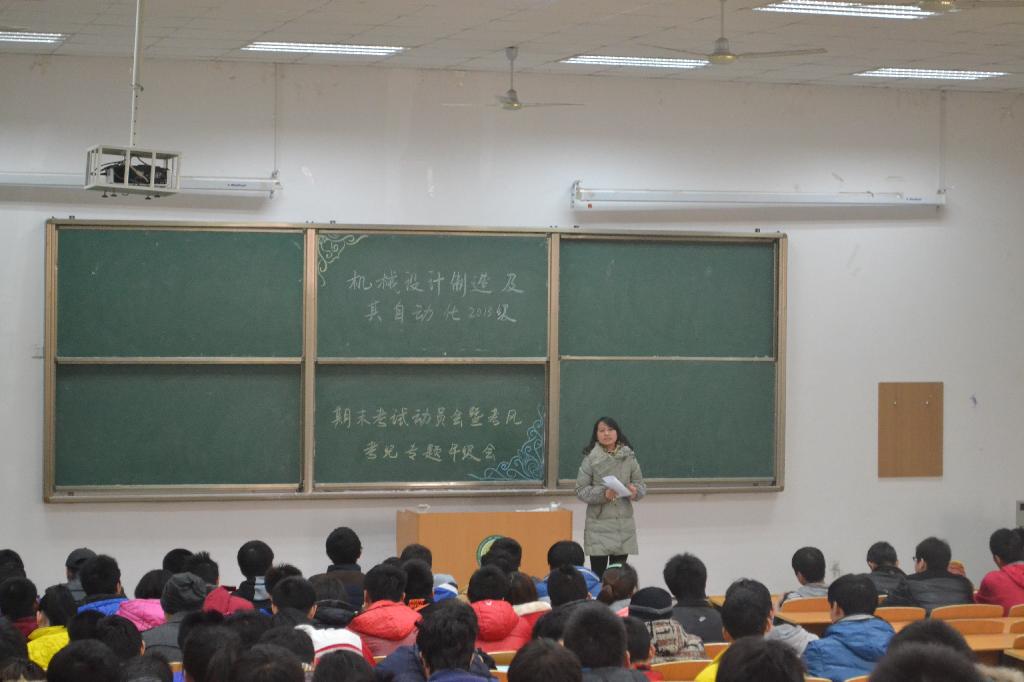 2013年12月20日,由Beat365官网13级辅导员张晶晶老师主持的期末考风考纪教育动员大会在9教101召开,13级机设全员参会。