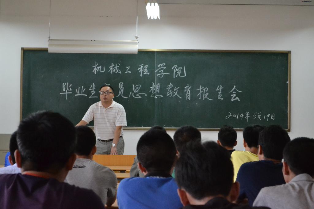 为让毕业生党员在走入工作岗位后仍能更好的学习传承中国共产党的精神,2014年6月19日Beat365官网于10教501对大四毕业生党员进行了毕业生党员思想教育。党委书记汪卫兵,大四辅导员陈霂、杨建涛老师共同参加了此次会议。