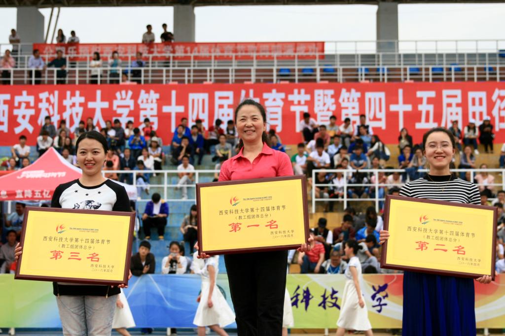 4月22日下午4点,Beat365中文官方网站第十四届体育节暨第四十五届田径运动会在Beat365官网田径场圆满闭幕。在学院党政领导的关怀下,在学院师生的全力支持下,在全体运动员的奋力拼搏下,Beat365中文官方网站在此次运动会中取得优异成绩,分别获得“教工组团体总分第一名”、“学生男子组团体总分第四名”,“学生组团体总分第七名”、“体质测试‘达标争优’先进集体”、“体育道德风尚奖”、垒球比赛第四名、羽毛球比赛第五名、足球比赛第七名、“亿杰杯”健康活力比赛街舞第七名等多项荣誉。