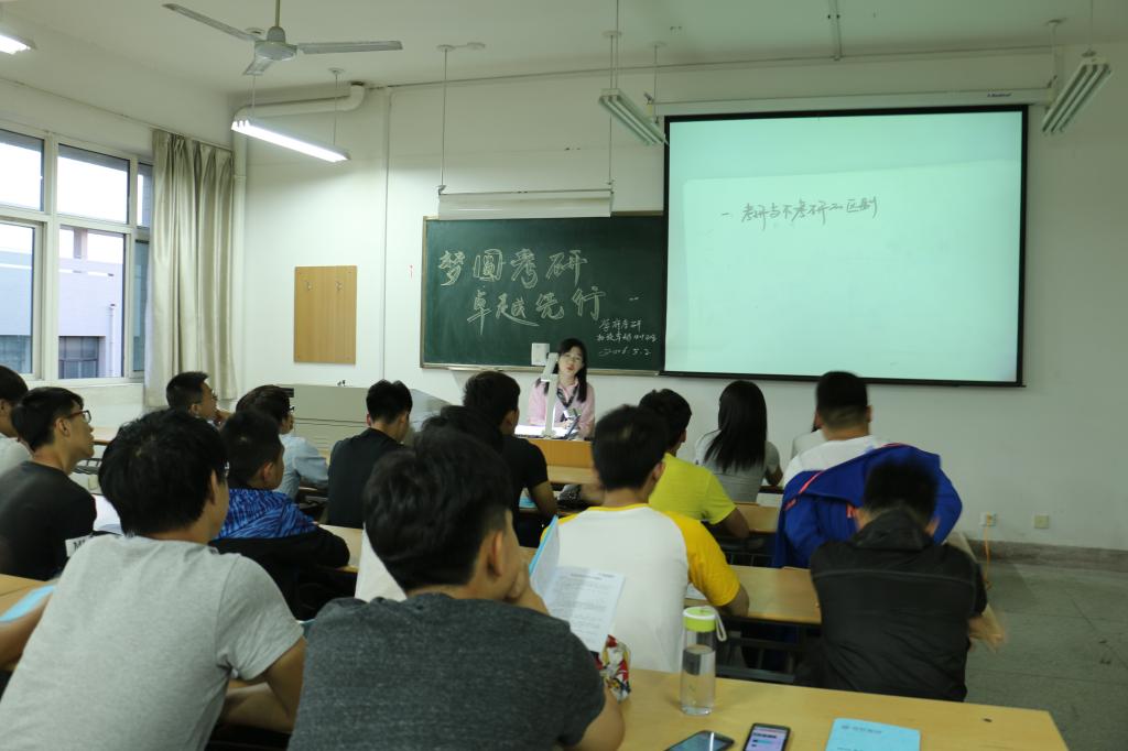 2016年5月3日晚七点半,机设设计制造及其自动化(卓越)1401班在辅导员吕叻加老师安排下邀请学府考研专业老师于十教501教室举办题为“梦圆考研 卓越先行”考研主题讲座。本次讲座由学府考研临潼分校校长余巍老师主讲,机设卓越1401班全体同学参与了本次讲座。