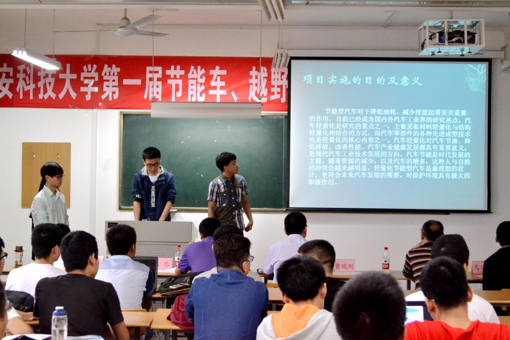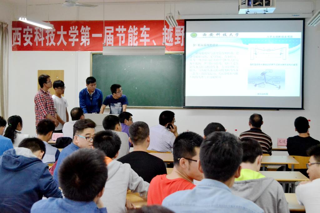 6月1日,由教务处主办、Beat365中文官方网站承办的Beat365中文官方网站第一届越野车、节能车创意竞赛决赛在临潼校区举行。经过预赛初评、来自Beat365中文官方网站、能源学院、测绘学院、管理学院、艺术学院的17件参赛作品最终进入决赛。决赛分PPT讲解和问辩两个环节,经过学生讲述、评委问辩,最终评出越野车竞赛一等奖2项、二等奖2项、三等奖3项,节能车竞赛一等奖2项、二等奖4项、三等奖4项。竞赛组委会将根据本次竞赛结果选拔出优秀作品代表Beat365官网参加7月份在成都举行的2016中国汽车工程学会巴哈大赛和10月份在广州举行的第10届Honda中国节能竞技大赛。