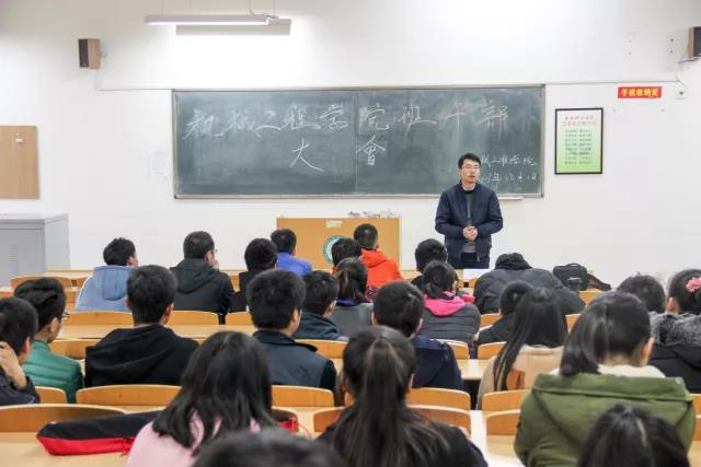 程老师强调年级干部应重视“一日的生活制度”,督促各班学生培养自己良好的生活习惯和学习习惯;重视第二课堂学习培养,督促学生提高科技竞赛的兴趣,重视本次四六级考试的复习工作,并预祝2016级学生取得优异成绩!