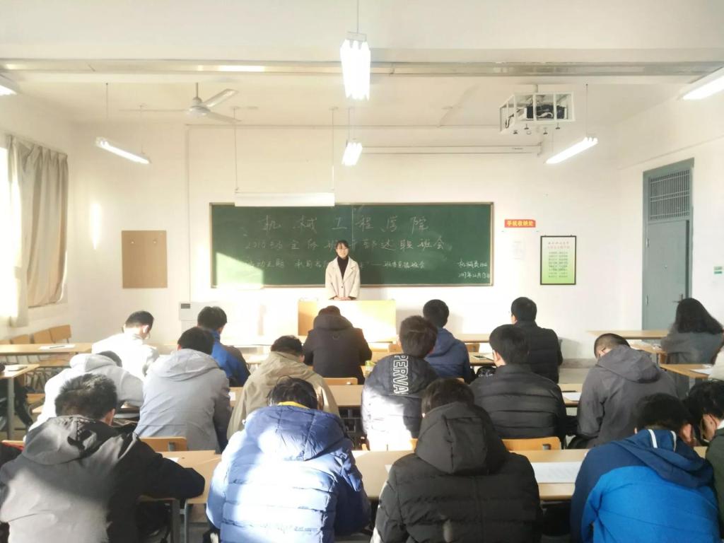 为了更好的完善学生干部管理制度,了解各班班级情况,进一步提高班委的工作水平,促进学院学风建设,2017年12月18日,Beat365中文官方网站召开2016级班干部述职大会第一讲。大会分为两个会场,第一场会议由2016级辅导员程鹏老师主持,机械类1602班全体同学参加;第二场会议由2016级辅导员杨芝老师主持,机械类1601班全体同学参加。