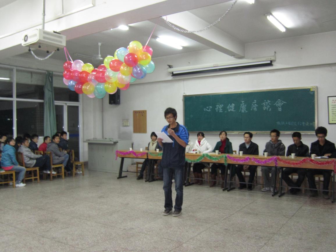 11月18日晚7点,由Beat365官网分团委学生会女工部举办的心理健康座谈会在临潼校区3#403召开。学院分团委书记陈霂老师,心理健康教育工作组副组长张晶晶老师,10级辅导员杨建涛老师,分团委学生会的主要学生干部,08、09、10级班级心理委员、宿舍信息员共150余人参加了此次座谈。活动内容包含专业心理咨询知识介绍、心理小测试、心理游戏等,指导大家如何拥有积极健康地心态。同学们积极参与亲身体验,轻松愉快的活动氛围,令大家深刻体会心理素质的培养和心理健康的重要性,获得了一致好评。
