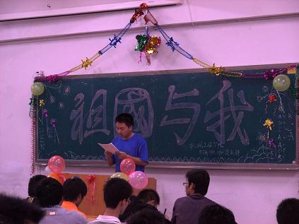 10月18日,在大二团支部的协助下,大一新生第二次团日活动如期举行。这次活动主要围绕建国六十周年祖国变化及对自己的影响这一主题进行。同学们谈及了六十年来祖国的巨变,人民生活水平的提高和自己对祖国的热爱之情! 并表示了努力学习.立志报国的决心!这次活动的举行增强了大一、大二之间的交流,增进了他们之间的友谊,同时也对大一同学树立自己大学生活的奋斗目标,明确未来的前进方向产生了积极的影响。