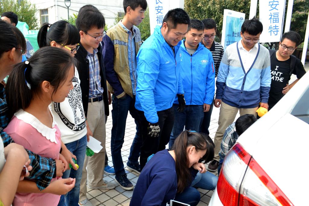 10月18日上午9点,长安福特安全节能驾驶训练营于榴馨苑门口正式开启。长安福特安全节能驾驶训练营(DSFL)包括理论培训和驾驶技巧两大内容,通过专业的知识培训和体验来提升青年人安全节能驾驶意识和技巧。通过参与勇士换胎、趣味足球、生死醉驾等游戏,听专业讲师关于紧急逃生的讲解,同学们深入了解了了汽车安全驾驶的重要性、环保节能的必要性。