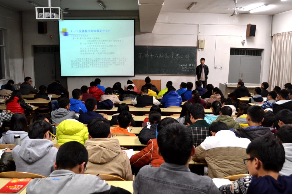 程老师从介绍党员组织发展程序、树立正确入党动机两个方面来对学员进行了培训。首先,程老师介绍了党组织发展党员程序的两个阶段、五个环节、十五个步骤和党员在组织发展中需要注意的问题。然后,程老师对入党动机的种类、正确入党动机的内涵、树立正确入党动机的途径方法做出了讲解,同时,邀请学员分享自我入党动机。最后,老师希望学员们能严格按照党章规定,严格要求自己,从身边的小事做起,加强党性修养,争取早日成为一名合格的共产党员。