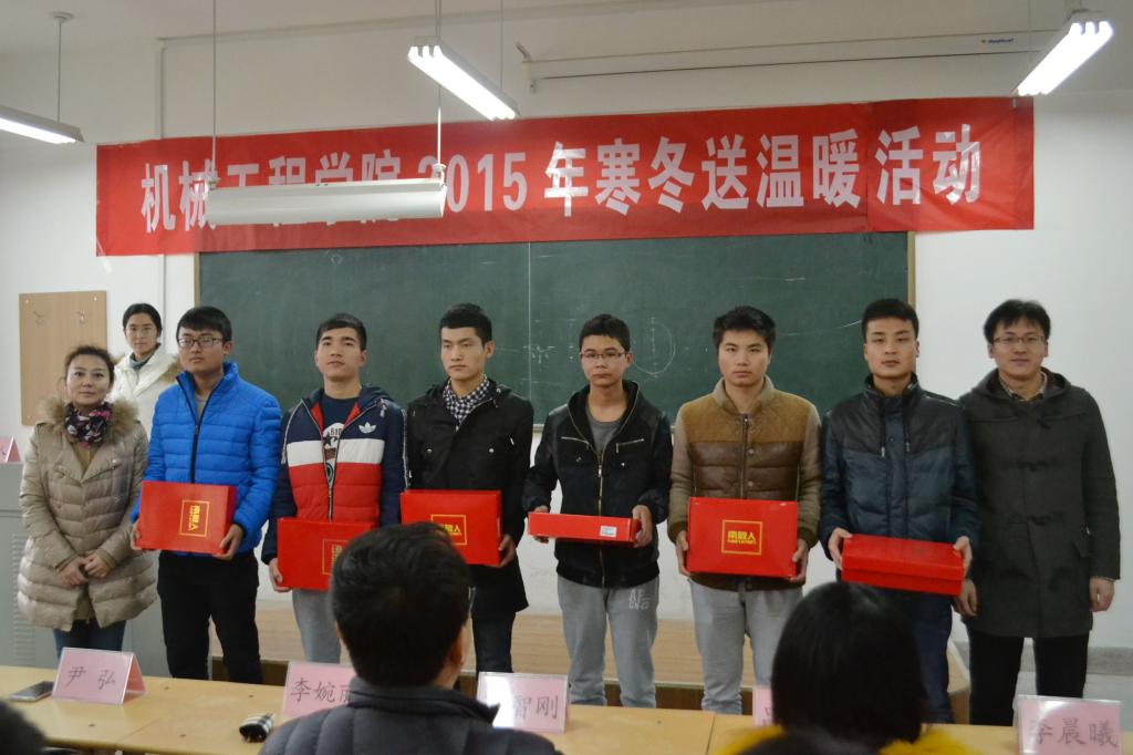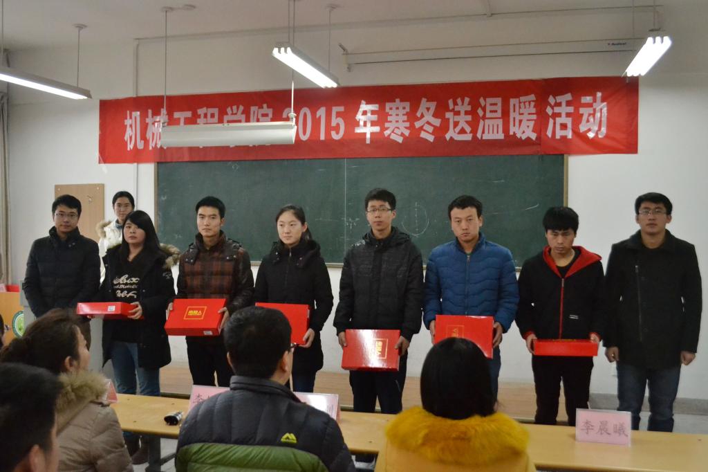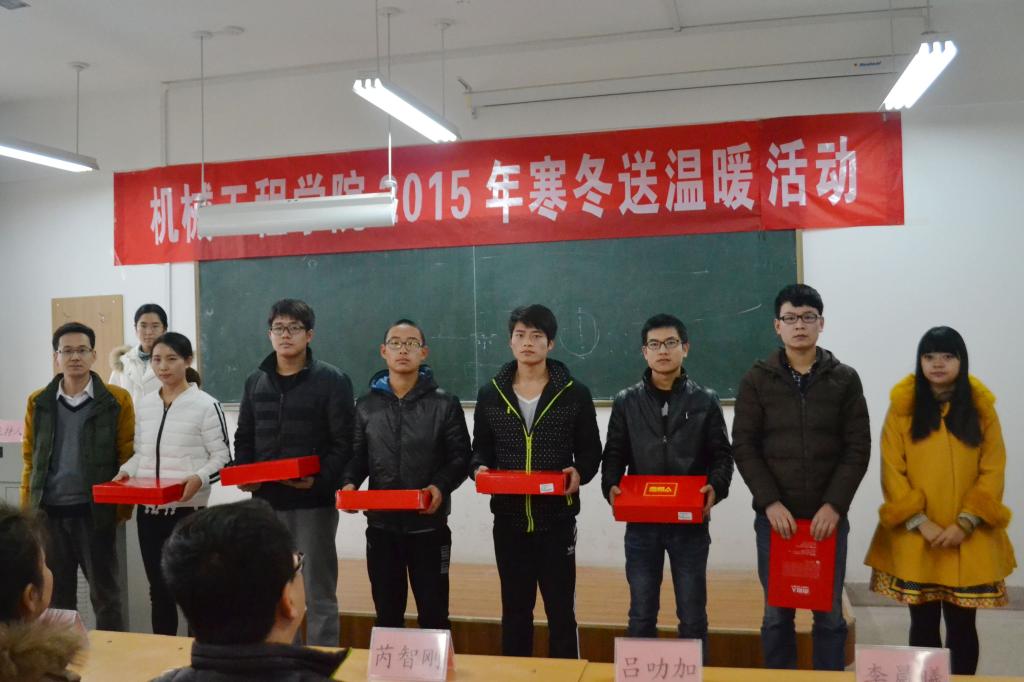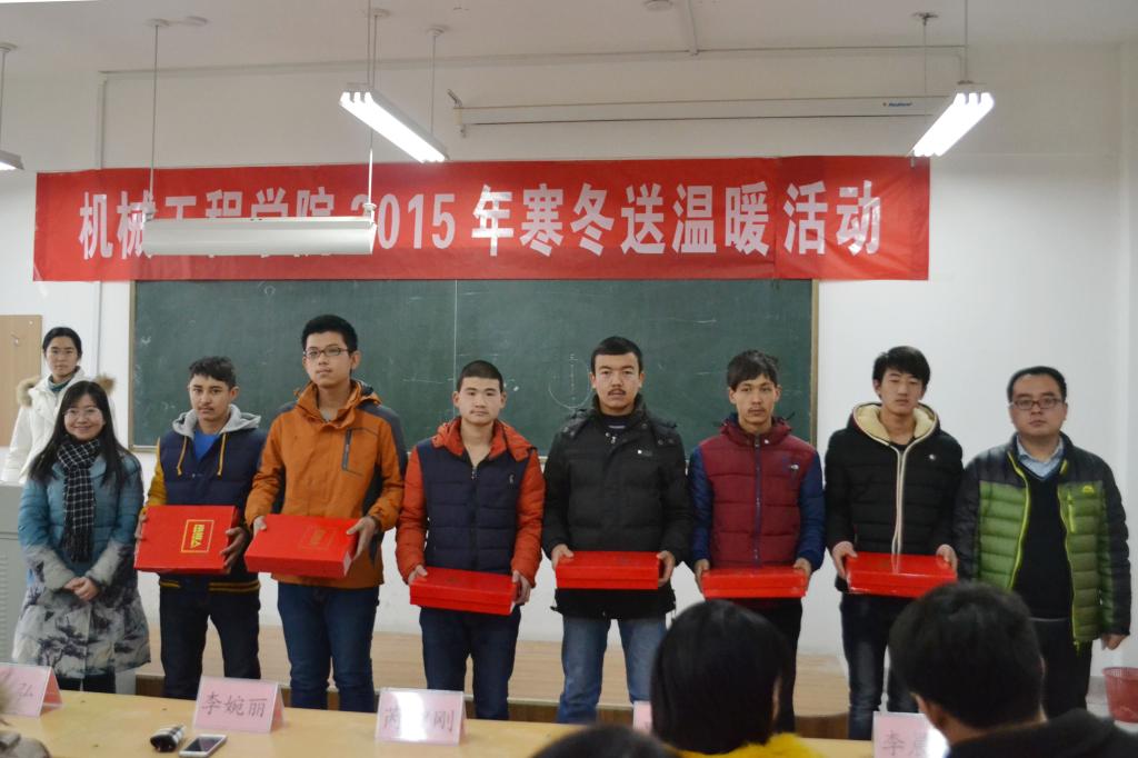 在活动的开始,刘烨做了开场陈词,讲述了Beat365中文官方网站“寒冬送温暖”活动的由来和本次活动的目的:学院始终在关注着家庭困难的同学,希望给与他们帮助与鼓励。特借此时机,向家庭困难同学送去冬日中的温暖——一套保暖内衣。接着,诸位与会老师向家庭困难学生代表分发了保暖内衣并合影留念,受助学生代表周驰发言,向学院表达了感谢,并且表示会更加认真的学习。最后,校资助中心主任尹弘及学院党委副书记李婉丽分别作了讲话,强调受助同学应更加努力学习回报家长、回报学校、回报社会,不辜负自己的大学,不辜负自己的青春。