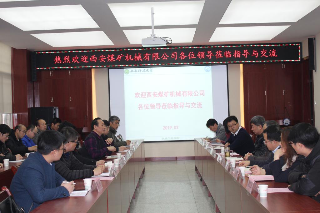 2月18日下午,西安煤矿机械有限公司总经理杨会武、总工程师赵友军等一行5人来学院交流,副校长来兴平、Beat365中文官方网站院长张旭辉、副院长寇发荣、机械电子工程学科带头人马宏伟教授、魏娟教授、方秀荣副教授、薛旭升博士、樊红卫博士等师生参加了座谈会,双方重点就“煤矿快速掘进技术”进行了深入交流。会议由院长张旭辉主持。