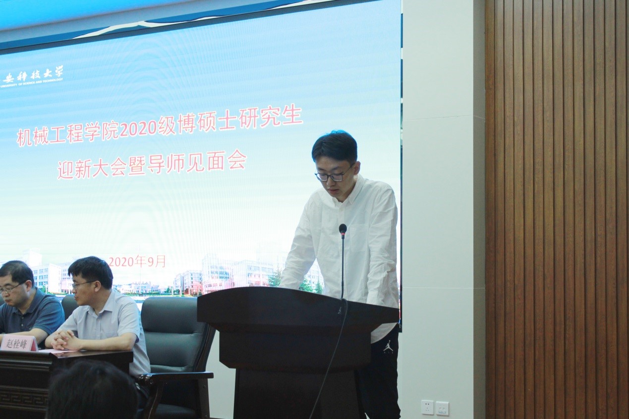 导师代表钟斌、在校生代表乔欢乐、新生代表孙育恒分别做了发言。