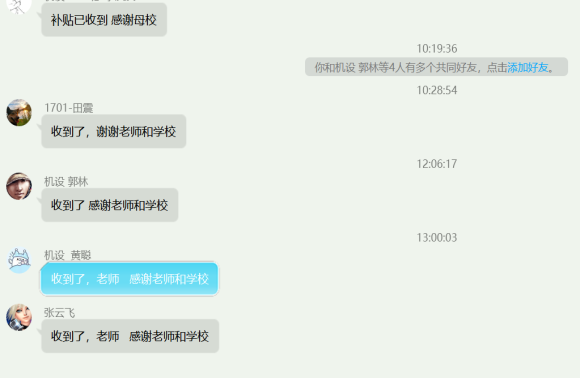 以人为本,扎实做好服务保障。一是全体学工干部积极响应学校“横到边、纵到底”学生教育管理要求,全体学工干部“下沉”学生宿舍,深入学生,指导学生开展宿舍学风建设和宿舍文化建设,帮助学生提高自我管理的能力,营造健康积极有序的宿舍文化生活氛围。二是指导学生做好科学防护,分批次为两校区研究生、本科生发放口罩、洗手液等防控物资,累计发放防疫物资3万余元,防疫物资发放覆盖全体学生。三是及时温暖关心生活存在困难的学生。得知学院徐彬等17级延期学生因参加全国四级英语考试,杨扬等2017级毕业生参加研究生考试,受疫情影响滞留学校附近或周边,生活存在一定困难。学院立即安排摸排,“一对一”联系掌握学生生活情况,建立信息台账并及时传达了学院的问候。1月2日上午10时,学生个人银行卡收到学院为其发放的临时困难补助,合计4000元,相关同学纷纷发来信息表达“感谢学院、感谢母校”的惊喜心情。