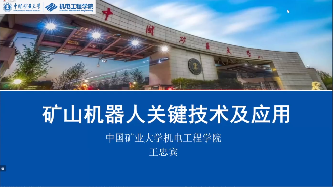 中国矿业大学机电工程学院院长王忠宾教授做了题为“矿山机器人关键技术”的报告,系统分析了矿山机器人发展与研究成果及相关应用示范。