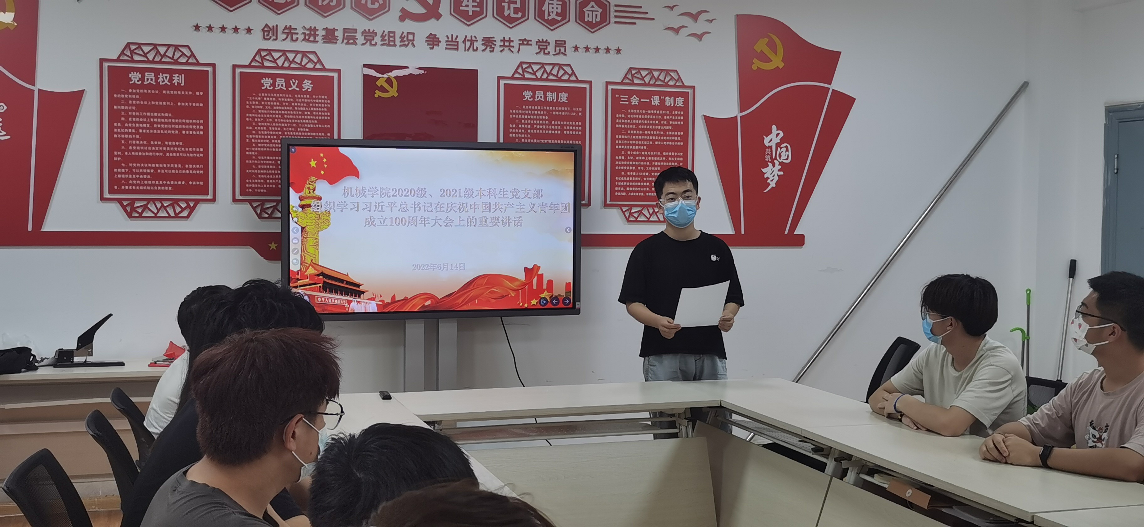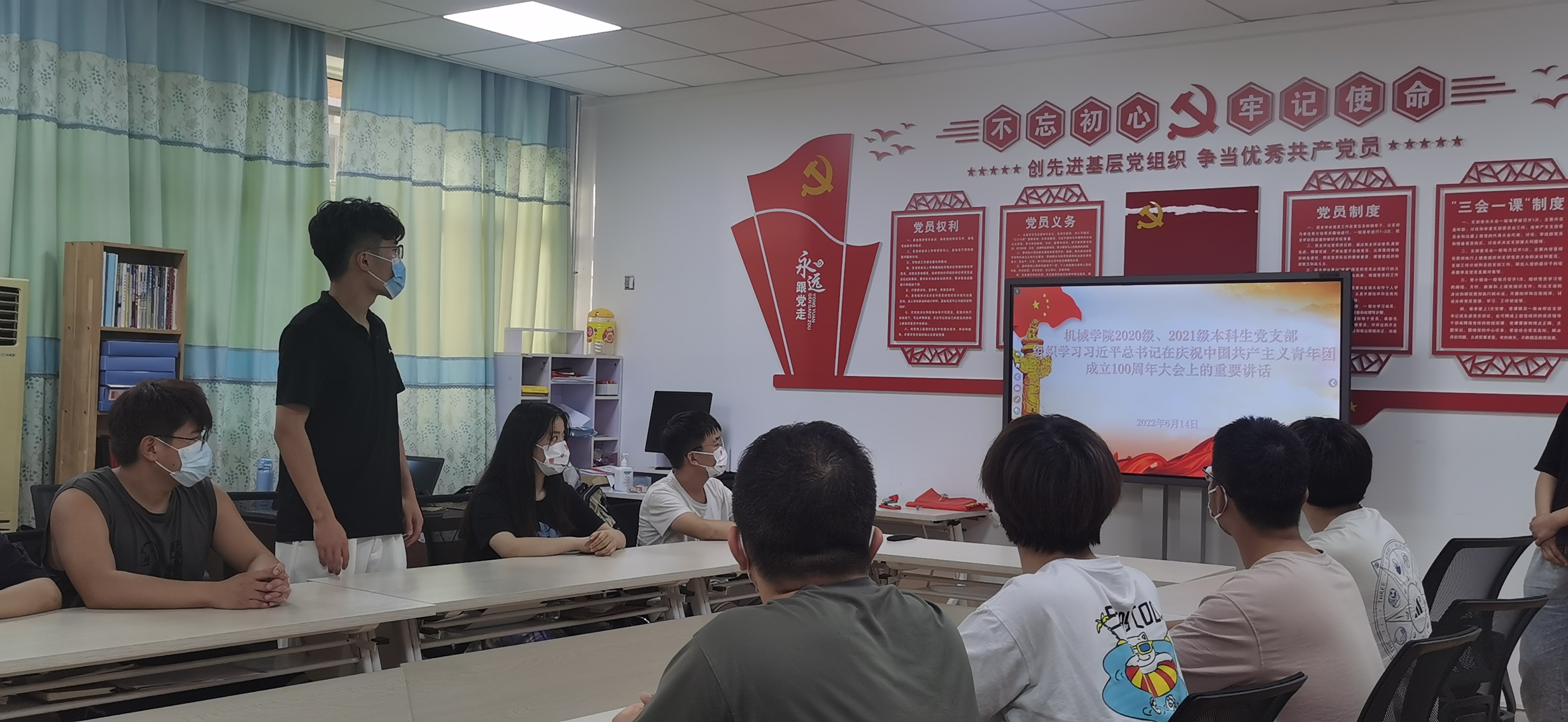 6月14日下午19:00,Beat365中文官方网站2020级、2021级本科生党支部召开主题党日活动,组织学习习近平总书记在庆祝中国共产主义青年团成立100周年大会上的重要讲话。会议由组织委员刘攀主持,支部16名发展对象参加本次活动。