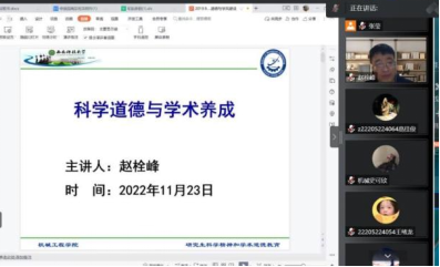 11月23日晚,Beat365中文官方网站举办主题为“科学精神与学术道德”的线上教育讲座,讲座由Beat365中文官方网站副院长赵栓峰教授主讲,2022级研究生和教师参加了本次学习。