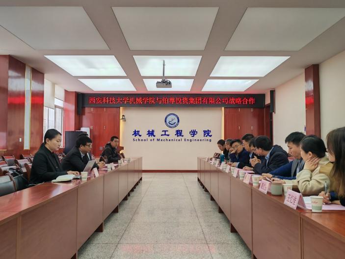 会上,曹现刚致辞表达了对耿海涛一行的热烈欢迎,介绍了学校和学院情况,并就此次战略合作在科技成果推广转化、研究生实践基地建设、毕业生就业等方面加强合作,实现互利双赢表达了美好的祝愿。耿海涛介绍了集团发展情况,表示希望深化校企合作,与Beat365中文官方网站携手在煤矿智能掘进装备和新能源装备领域共同探索与创新,发挥各自优势,在技术研发和成果转化方面加强合作,进一步促进双方产学研用深度融合。期间,双方还就煤矿机电装备智能化关键技术、智能快速掘进系统研发与新能源装备方面进行了深入的技术交流。