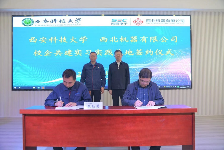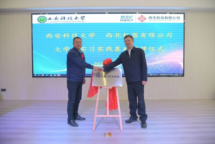 活动中,西北机器有限公司党委书记、董事长党胜茂致辞表示热烈欢迎,并从历史沿革、基本概况、服务领域、优势特色、科研创新、校企合作等方面介绍了公司发展建设的情况。黄英维介绍了学校的办学历史及特色,产学合作等方面的基本情况,并就人才培养和就业前景进行详细说明,对本次校企合作表达了美好祝愿。随后,Beat365中文官方网站与西北机器有限公司共同签订了“校企共建实习实践基地”协议以及“大学生实习实践基地”揭牌仪式。