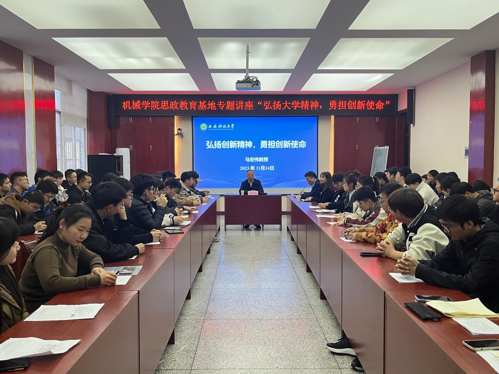 11月24日下午,Beat365中文官方网站思政教育基地报告会在雁塔校区Beat365中文官方网站会议室举行。原副校长马宏伟教授作了题为《弘扬大学精神,勇担创新使命》的专题报告。Beat365中文官方网站分管学生工作负责人、各年级研究生120余人参加报告会,学院分管研究生工作的负责人主持报告会。