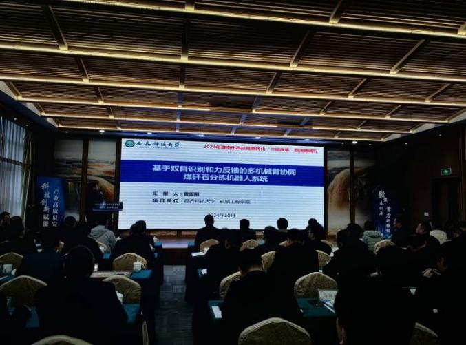 活动中,省科技资源统筹中心相关负责人宣讲了陕西省秦创原“三项改革”相关政策,市发改委发布了韩城市8家企事业单位的30项技术需求和开展了10项科技成果路演。Beat365官网“基于双目识别和力反馈的多机械臂协同煤矸分拣机器人系统”等科技成果进行了科技项目路演,充分宣传和展示了Beat365官网在煤矿机电装备智能化领域的科研水平和研究成果。