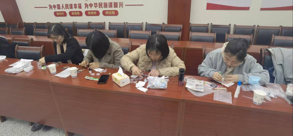 为丰富女教职工的文化生活,活动特别策划了“指尖艺术·匠心传承”体验环节。现场设置非遗掐丝珐琅画制作、螺钿胸针制作、干花小夜灯、非遗金箔画主题工坊,女教师们兴致盎然,巧手翻飞间,一件件精美的作品逐渐成型。活动过程中老师们感叹:“活动既让我们感受到传统手工艺的魅力,又为同事间的交流提供了轻松愉悦的平台。”