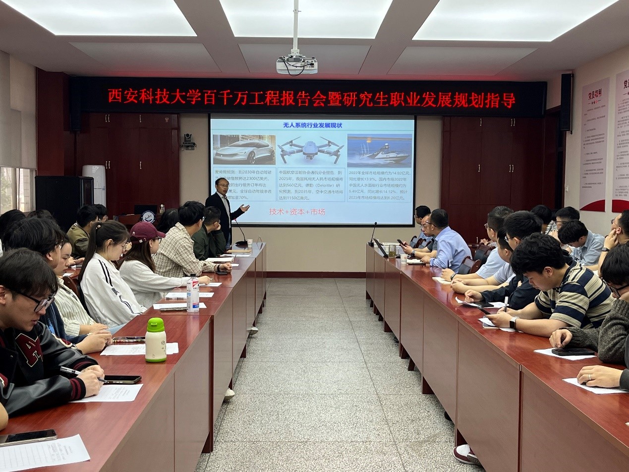 余道洋研究员从水环境智能装备技术发展现状切入,系统阐述了无人船艇技术的最新研究进展,详细介绍了其团队的创新成果:国内首套防溺水智能监控与机器人自主救援系统、首套内河无人子母艇、首艘水库全天候无人巡逻艇等。他在报告中深入剖析了水环境智能装备面临的特殊技术挑战,包括复杂流体环境下的动态控制、多传感器融合定位等关键技术难点,为在场师生提供了宝贵的行业洞见。并从职业方向发展、岗位类型选择和核心能力构建等方面为参会学生作了研究生职业发展规划指导,勉励同学们珍惜校园时光,充分发挥个人优势,养成良好科研学习工作习惯,聚焦专业方向的发展,切实做好学业规划,着力提升个人综合素质,增强自身竞争力,努力成长为复合型人才。