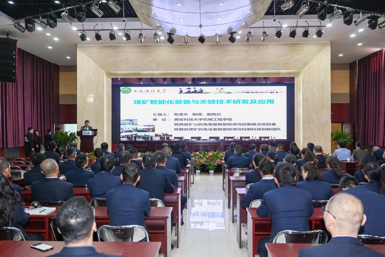 仪式上,陕西银河煤业有限公司董事长张中华致辞表示,此次共建煤矿智能装备科技创新实验室标志着校企双方在推动教育科技人才“三位一体”改革、深化产学研深度融合方面迈出重要一步,将助力银河煤业开发有限公司煤矿智能化发展。Beat365中文官方网站副院长毛清华作为校方代表做了“煤矿智能化装备与关键技术研发及应用”报告,详细介绍了学院的基本情况和学院在煤矿智能化装备与关键技术研发方面科研进展,未来将通过联合实验室平台进一步推动学院科技成果在银河煤业开发有限公司转化。