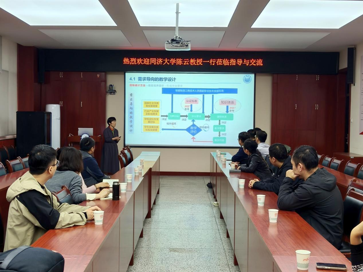 座谈会上,陈云教授围绕“智能制造专业建设与人才培养路径”主题,结合其在智能制造系统、工业互联网、数字化工厂等领域的深厚研究积累与工程实践经验,分享了同济大学在智能制造专业建设、课程体系构建、产教融合模式等方面的先进理念与具体做法。他强调,智能制造作为“中国制造2025”与“新工科”建设的重点方向,应紧密对接《工程教育认证标准》中对“复杂工程问题”解决能力、系统设计与实现能力、跨学科融合能力等方面的要求,构建以学生为中心、产出为导向的课程与教学体系。