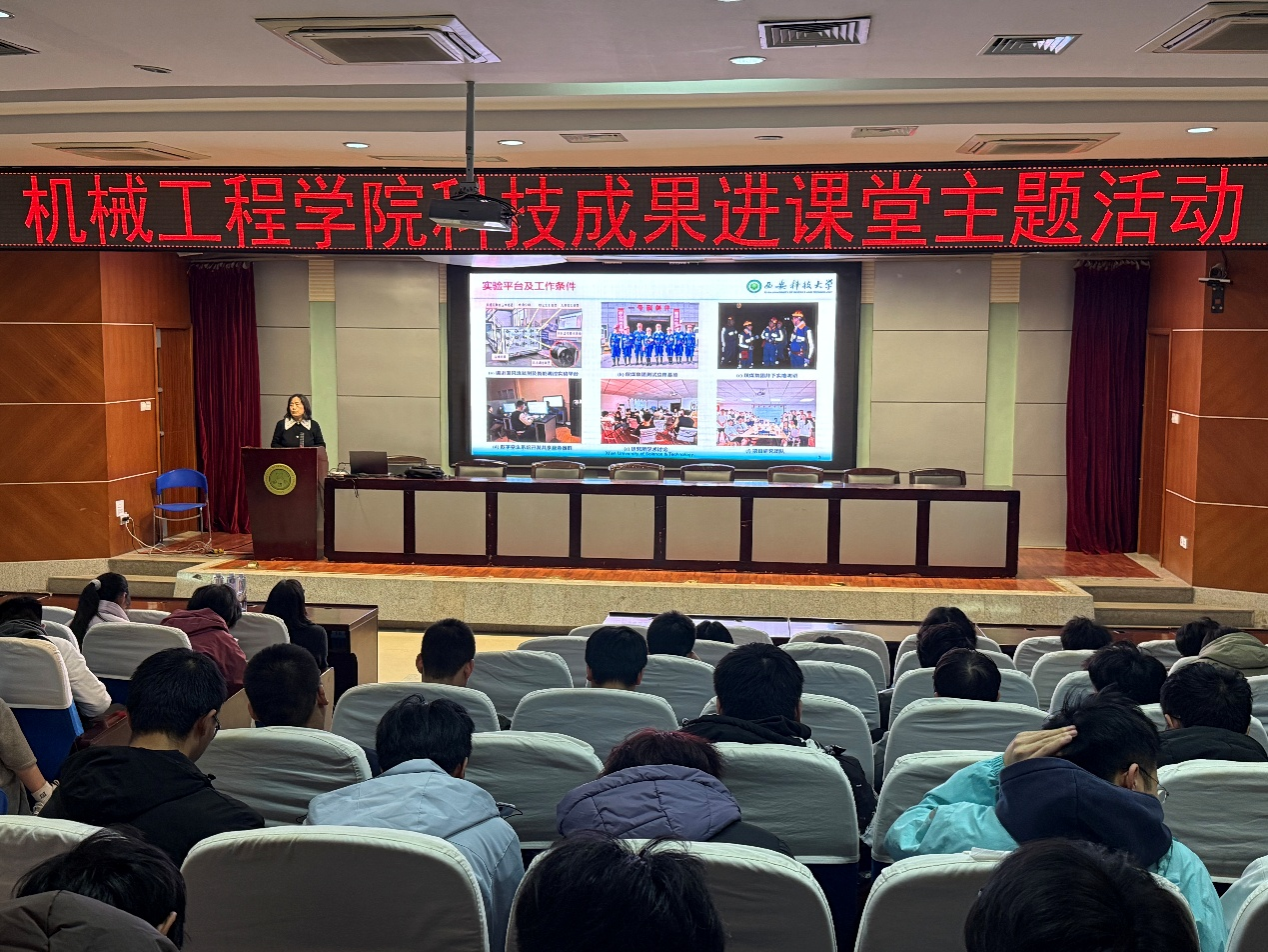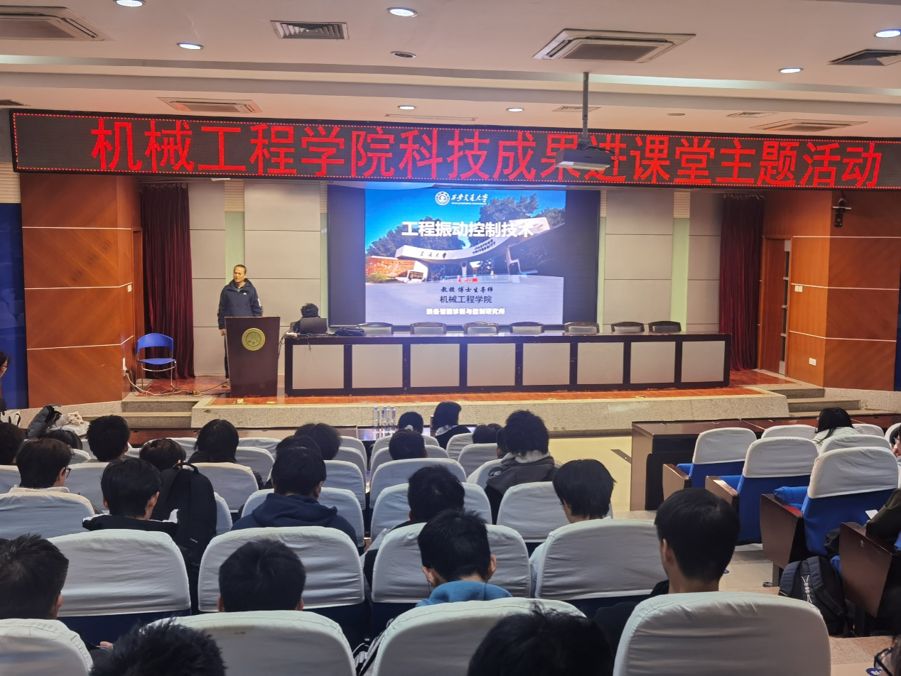 为积极对接国家“十五五”规划中“智能设计与制造”战略导向,深入贯彻落实《Beat365中文官方网站科研成果反哺教学工作实施管理办法(试行)》《Beat365中文官方网站本科生产教融合、科教融汇育人实施办法(试行)》等文件精神,Beat365中文官方网站依托陕西省煤矿智能化现代产业学院等平台,将“科技成果进课堂”从构想转化为生动实践,11月26日晚,Beat365中文官方网站在图书馆二楼报告厅成功举办“科技成果进课堂”主题活动报告会——“工程振动控制技术”“掘进工作面智能通风降尘技术及装备研究”。本场讲座由机械设计系牵头组织,学院23级、24级、25级机械设计制造及其自动化卓越、本硕、领军班200余名学生参加学习。机设系主任陈艳主持讲座。