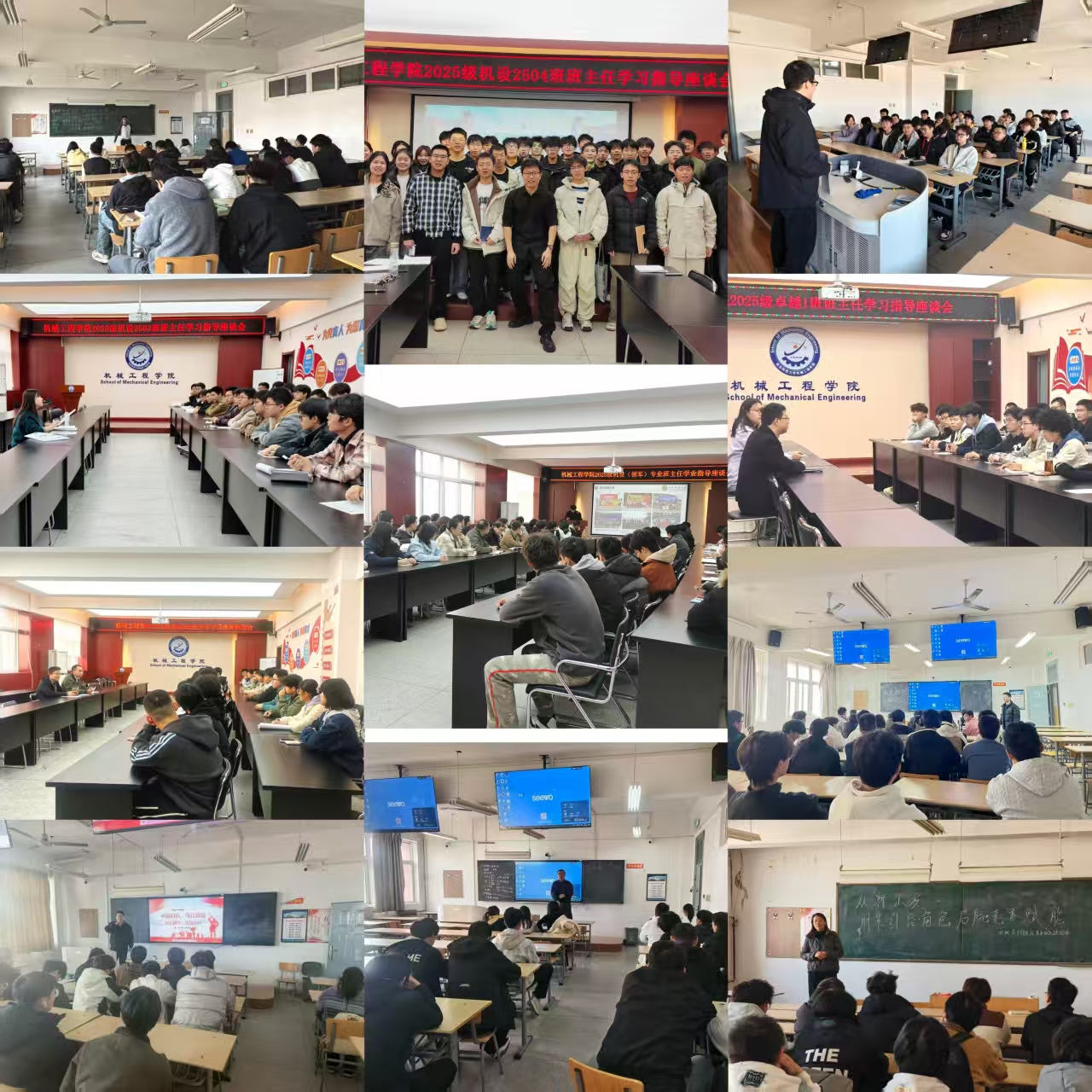 20场班会主题突出,内容饱满,曹现刚教授、毛清华教授、赵栓峰教授结合自身教学科研经历以及行业发展趋势,结合《中国制造2025》关于实现制造强国战略目标任务,对机械学科建设、培养方案、课程体系设置、机械类学生高质量充分就业等作了系统全面的阐释,分享了“保持终身学习习惯”“提升创新能力”和“提高解决问题的能力”“时间管理”等宝贵经验,要求同学们聚焦“工程实践能力+AI创新思维”双轮驱动目标,立足专业特色,主动对接行业需求,夯实专业基础课程,为成长为新时代卓越人才夯实基础。