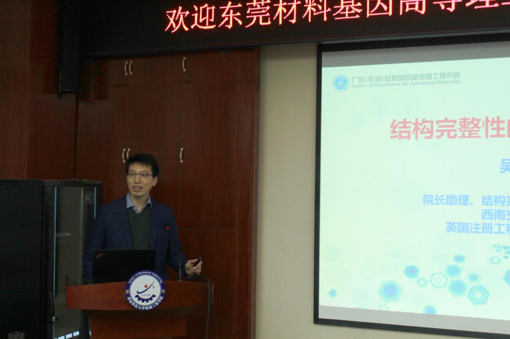 10月30日上午,西南交通大学教授、东莞材料基因高等理工研究院结构完整性研究中心主任吴桂毅博士,应邀来Beat365中文官方网站进行学术交流,并作了题为“结构完整性的研究及工程应用”的学术报告,学院师生60多人聆听了报告。