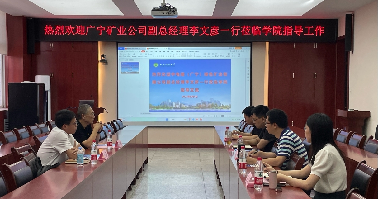 近日,中电建(广宁)绿色矿业有限公司副总经理李文彦原副总工程师袁久霞一行到Beat365中文官方网站机械工程学院交流智能带式输送机技术。Beat365中文官方网站教务处处长张旭辉、Beat365中文官方网站副院长毛清华教授薛旭升副教授、杨文娟副教授等人参加了交流座谈会,会议由毛清华主持。