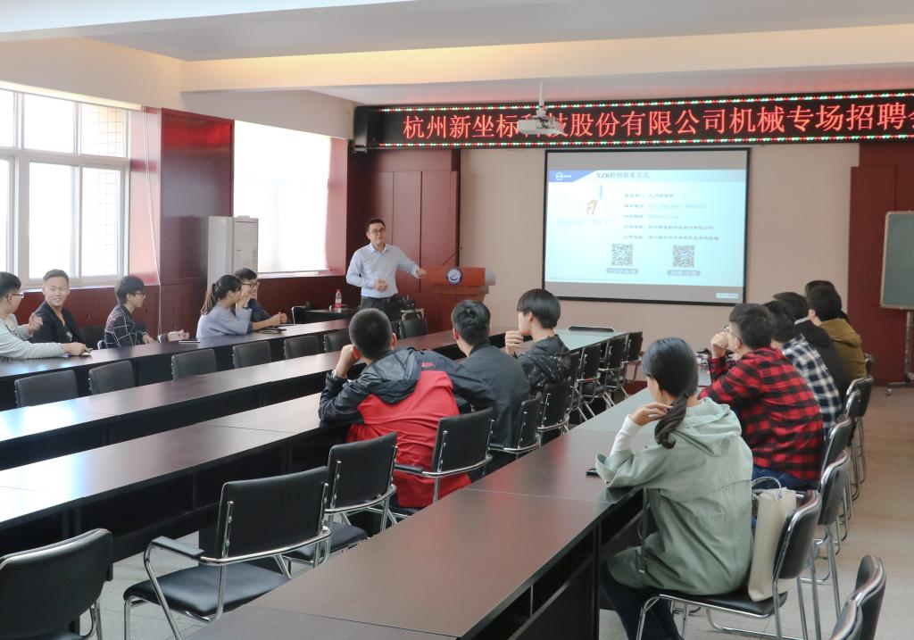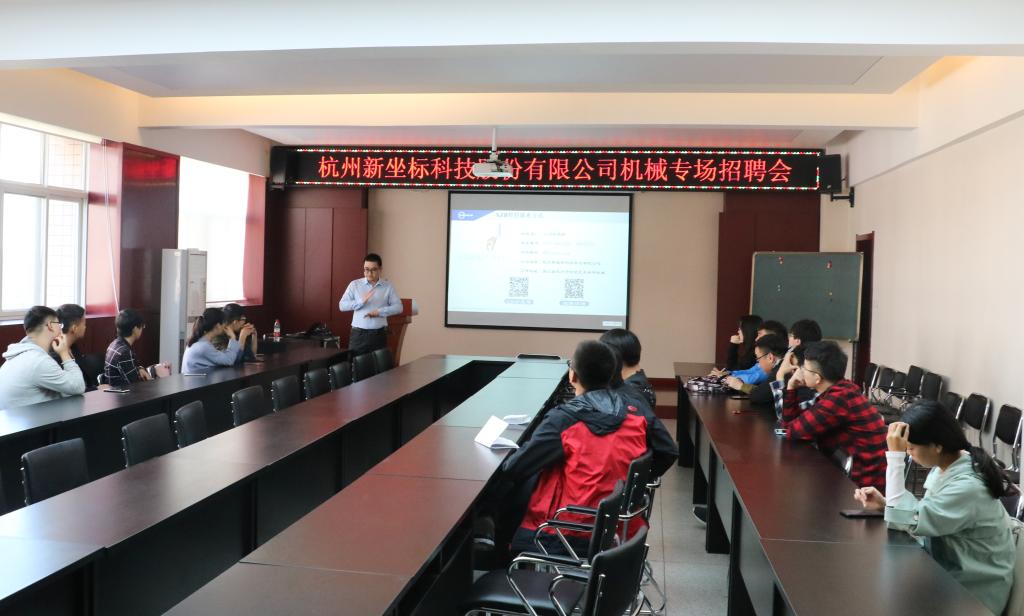 10月10日下午,Beat365中文官方网站在10号教学楼320室举办了杭州新地标科技股份有限公司专项招聘会,来自Beat365中文官方网站的若干名学生参加了招聘会。
