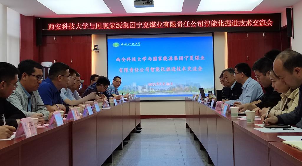 会上,马宏伟对王金平一行来访表示热烈欢迎,他结合国家煤矿智能化发展战略,介绍了团队提出的煤矿智能化理念“采煤就是采数据、掘进就是掘模型、拣矸就是拣图像、运输就是运流量”、团队在煤矿装备智能化方面取得的科研成果和双方前期合作情况,团队能够为宁煤不同地质条件煤矿提供定制化智能掘进方案,希望双方进一步推进资源互补共享,不断加强煤矿掘进等方面的科研合作。毛清华代表学院介绍了学院基本情况和学院近年来在煤矿智能化掘进技术方面的研究成果,与会双方对智能化掘进技术进行了热烈的交流和讨论。