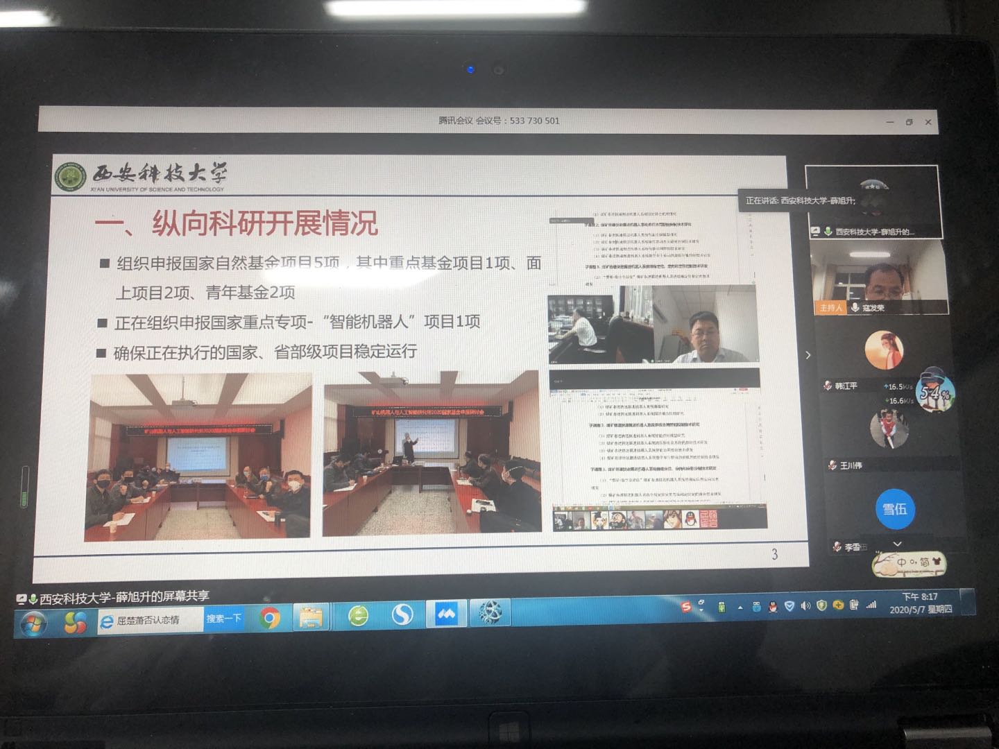 为了确保学院上半年科研工作有序推进,加强各科研团队之间交流,5月7日下午, Beat365中文官方网站召开院属研究所工作推进线上视屏交流会,院长张旭辉、副院长寇发荣、副院长赵栓锋,矿山机器人与人工智能研究所等8个研究所负责人、骨干成员等30多人参加。会议由副院长寇发荣主持。