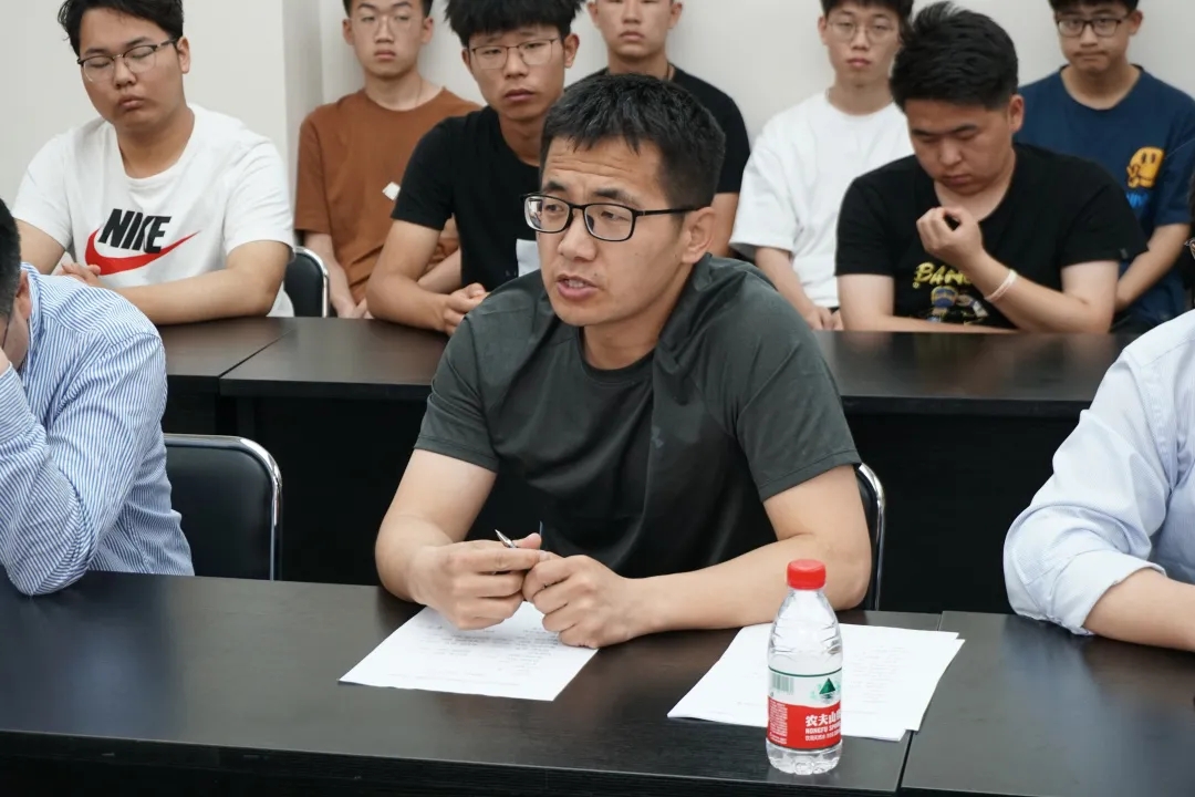 团队前任秘书长张少博同学发言讲到,从大一加入车队以来,车队就像个大家庭,老带新一届一届传承不光学了很多知识提高了自己的动手能力,更重要的是加强了同学之间的交流希望新加入这个大家庭的同学们都能有车队的认同感和归属感,明白自己的责任,一起努力,经营这个家