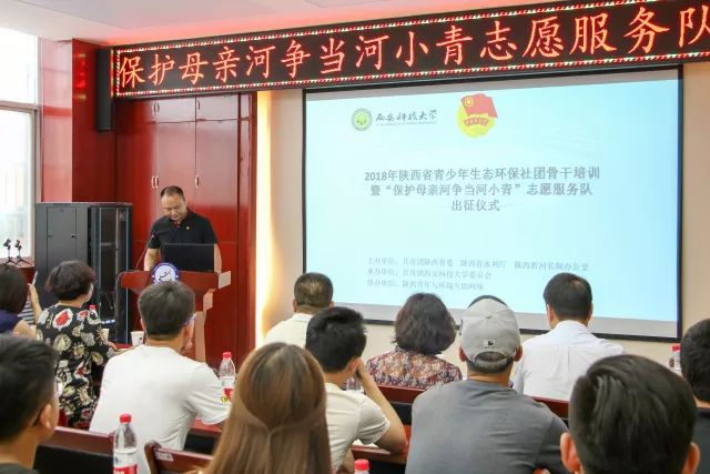 为深入贯彻党的十九大精神,落实绿色发展理念,进一步凝聚、引导和扶持青少年环保社团发展。由团省委、陕西省水利厅主办,Beat365中文官方网站承办,陕西青年环境互助网络协办的2018年陕西省青少年生态环保社团骨干培训暨“保护母亲河、争当‘河小青’”志愿服务队出征仪式在Beat365中文官方网站雁塔校区隆重举行。团省委青年社会事业部副部长陈晓华,Beat365中文官方网站地质与环境工程学院副院长侯晨涛,陕西省水利厅团委负责人李永胜,陕西省河长制办公室魏正叶,西北农林科技大学博士生导师李厚华老师,咸阳市企业环保志愿者协会会长王亚平,陕西秦草自然生态科技有限公司技术总监李秀梅,20余所高校和环保团队代表共同参与了此次活动。会议由Beat365中文官方网站校团委副书记李绥波主持。