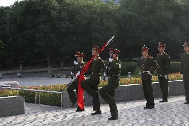 礼宾队正踏着整齐地步伐,迈着坚定的步子,目视前方,炯炯有神。