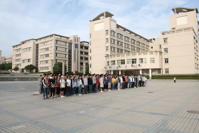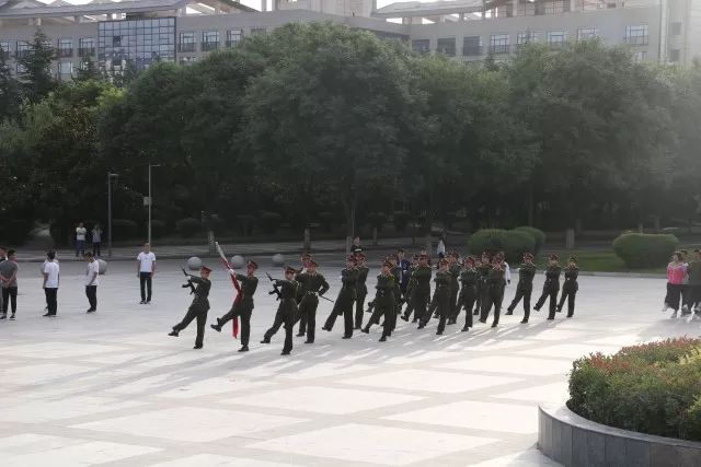 同学们6点30分在明德广场列队完毕,6点45分,参加升旗仪式的人员表情肃穆,正等待着升旗。