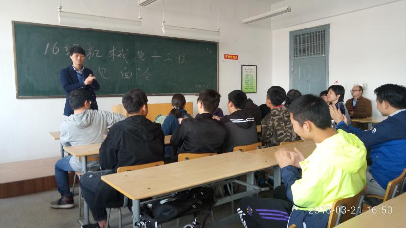 3月21日下午4:30,在临潼校区10号楼511教室,Beat365中文官方网站2016级机械电子工程专业教师与学生见面会顺利举行。首先,2016级机电专业班主任、仪器系樊红卫老师介绍了本次会议的目的和意义,介绍了出席本次见面会的老师;各位老师和同学们进行互动,完成了师生对接;会议还邀请了创新创业办韩江平、实验中心王津等老师参加,韩老师就学院创新创业政策、基地和目前运行情况及实验中心开放政策、开放项目等进行了简要说明;最后,樊老师要求同学们会后加强与系部、中心、基地老师的联系,做好专业发展规划。
