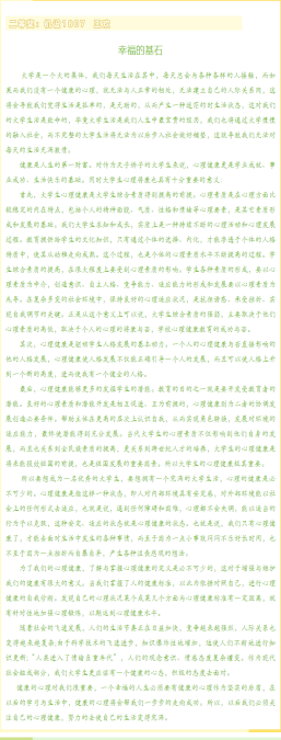 心理品质是大学生全面发展的基本要求,拥有一个健康的心理状态对大学生活至关重要。心相遇、爱同行——心理健康教育伴我成长为主题的心理健康征文活动自开始以来收到广大同学的积极投稿。经过激烈角逐,比赛已落下帷幕,共有15名同学获得一二等奖,获奖名单及优秀作品如下:
