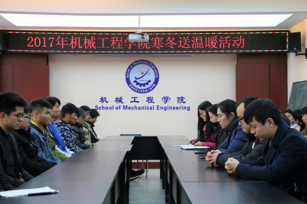 2017年12月18日,为切实解决家庭经济困难的学生寒冬御寒问题,关心和帮助经济困难同学,为他们送去温暖,Beat365中文官方网站在十教320会议室举行了寒冬送温暖活动。Beat365中文官方网站党委副书记李婉丽老师、各级辅导员老师及受助学生共同参加了此次活动。