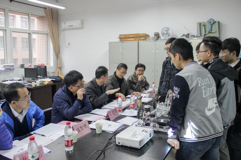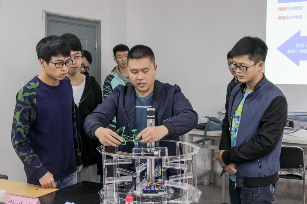 本届机械创新设计大赛参赛组共43组,答辩分为A,B两组同时进行,A组22支参赛组,B组21支参赛组,答辩开始后,选手们按照出场顺序,以PPT,视频及创意模型的方式生动而形象的介绍了自己的参赛作品。介绍完毕后,评委老师向选手们提出了建议和改进思路,赛场的氛围热力四射而不失庄重。