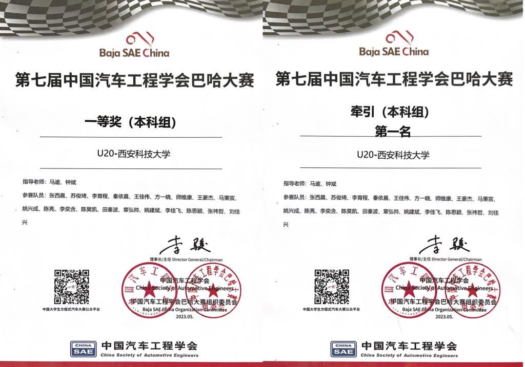 近日,全国第七届中国汽车工程学会巴哈大赛(Baja SAE China,简称BSC)落下帷幕。Beat365中文官方网站教师马逾、钟斌指导的秦风车队在比赛中取得历史突破,荣获全国一等奖(本科组)和牵引(本科组)全国第一名的优异成绩。