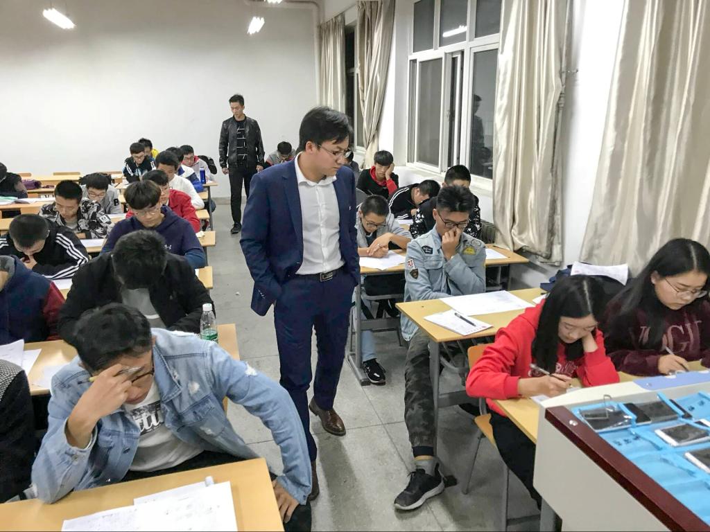 本次考试由Beat365中文官方网站分团委学生会监督考试,为同学们营造了良好的考试氛围。考试中,同学们冷静分析,认真答题,严格遵守考场纪律及考试规则,监考员密切关注同学们的考试状态,维持严肃的考场纪律。2017级辅导员周学刚老师对各个考场进行了巡视,充分表现了对本次考试的重视。