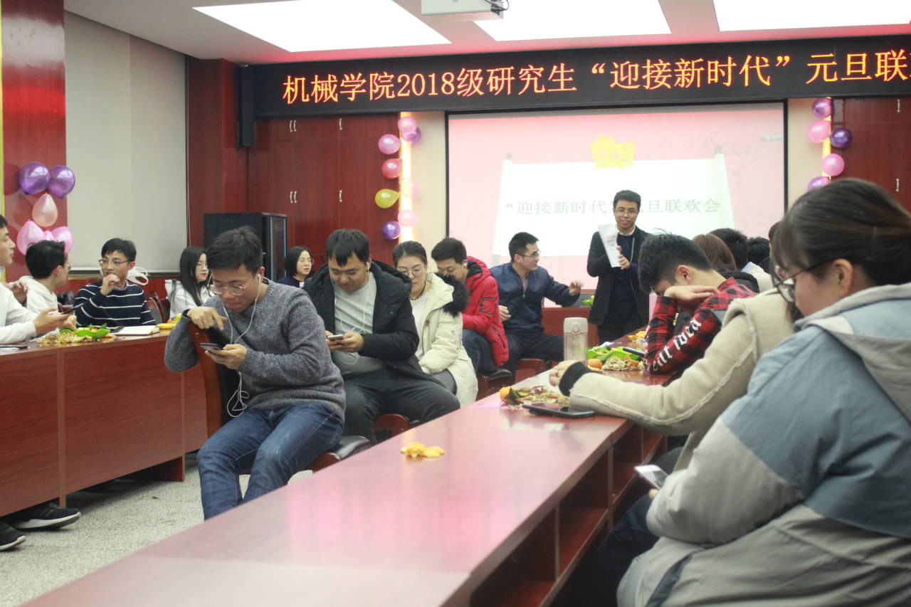 为了缓解大家的科研压力,活跃气氛,增进班级同学之间的交流以及各实验室同学之间的信任感、责任感,从而改善和增进班级同学之间的友谊,提高班级同学的归属感和班级凝聚力。Beat365中文官方网站研究生于12月30日下午6:30,在雁塔校区机械楼210会议室开展了主题为“团结友爱、开放包容”的“迎接新时代”元旦联欢会。