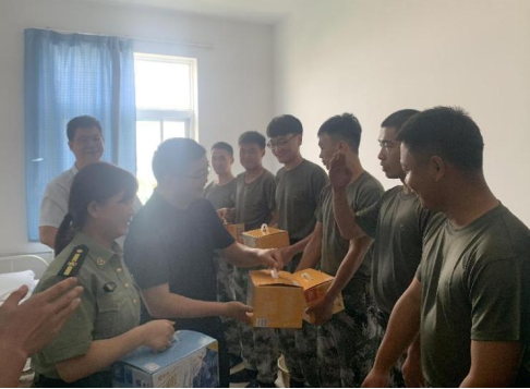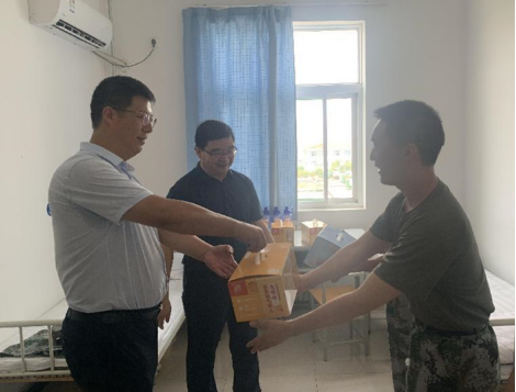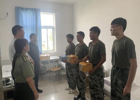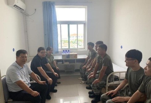 8月10日中午,Beat365中文官方网站党委书记郭小平、院长曹现刚、副书记尹弘、22级辅导员一行赴骊山校园慰问看望学院参训教官。